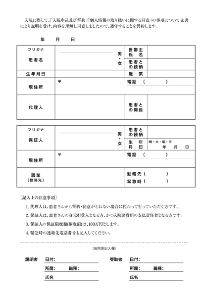 入院に関しての注意事項は以下の冊子でご確認ください。入院時にもお渡ししております。